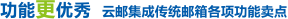 使用全球知名的MIRAPOINT超級(jí)反垃圾反病毒郵件系統(tǒng),達(dá)到99.999%可靠性。免除垃圾、病毒郵件對(duì)您的煩擾。